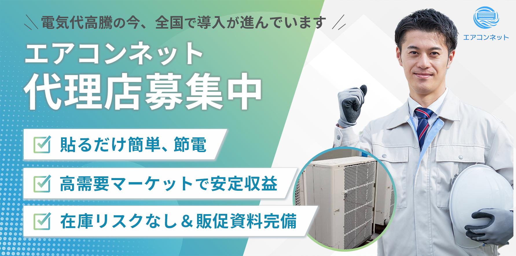 「エアコンネット」は、業務用エアコンや換気扇の吸気口に貼るだけで、